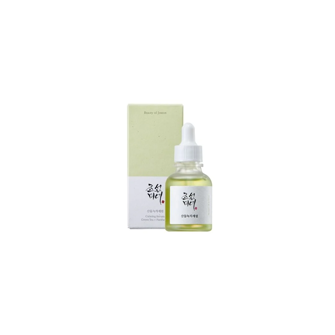 Beauty of Joseon Calming Serum : Green Tea + Panthenol is a vegan serum packed with Green Tea Leaf Water and Panthenol (Vitamin B5) to soothe heated or irritated skin.