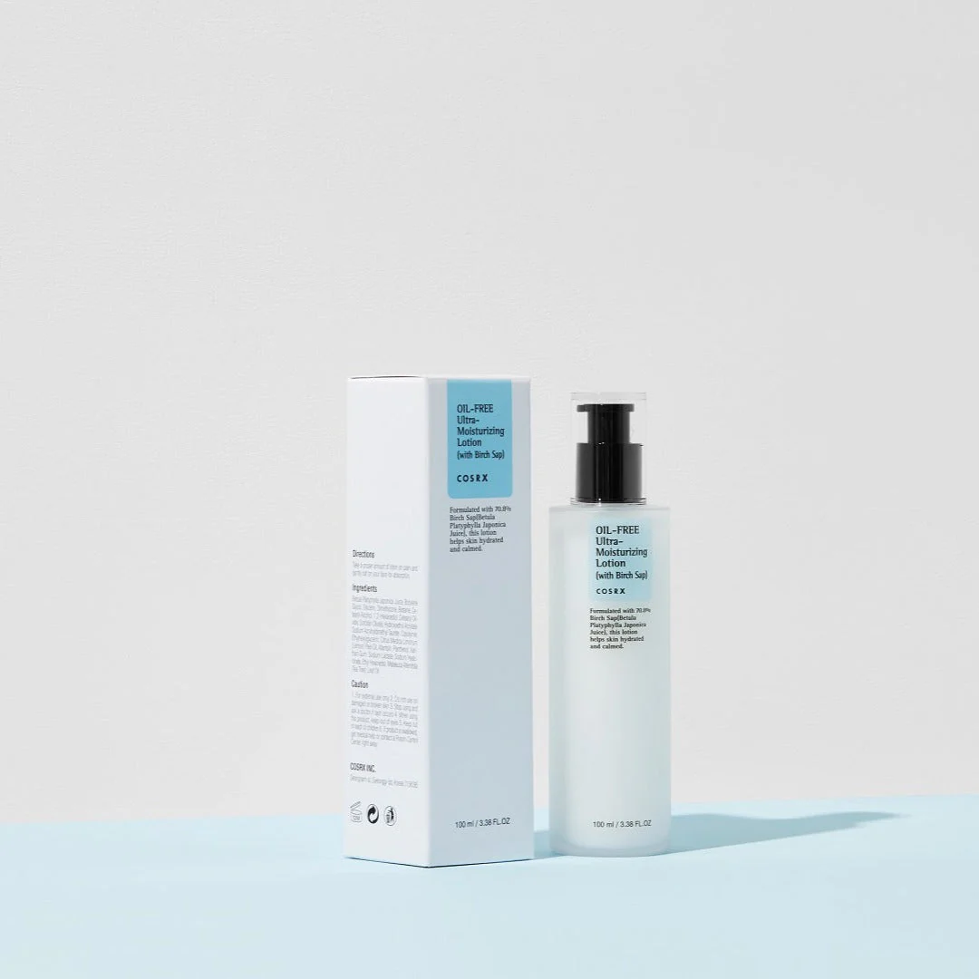 COSRX Oil-Free Ultra-Moisturizing Lotion (with Birch Sap) is a daily moisturiser for all skin type, especially oily and combination skin! It is enriched with Birch sap to calm and treat irritated skin.