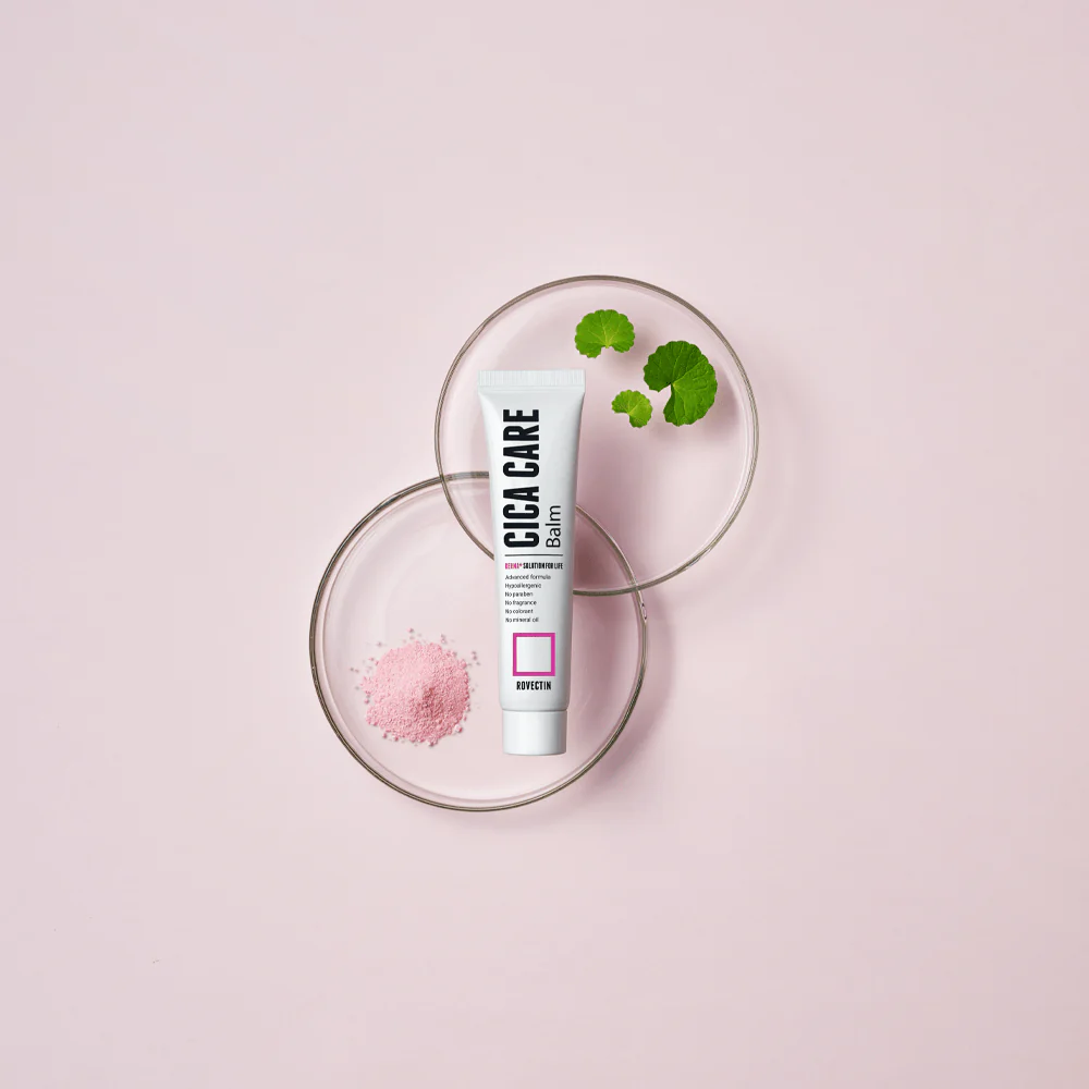 Rovectin's Skin Essentials Cica Care Balm gently soothes and hydrates irritated and acne-prone skin.